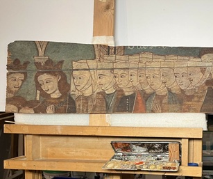 Del 17 de febrero al 10 de mayo de 2026 el Museo Arqueológico Nacional, Madrid, dentro de su Sala de Novedades Arqueológicas, con el título “Lo que la ciudad esconde. Imágenes de la corte medieval de Toledo” presenta una selección de las tablas policromadas descubiertas en Toledo en 2018.